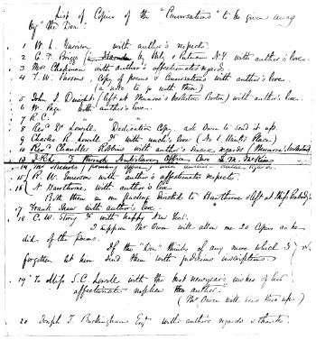 Facsimile of Lowell’s List of Friends to whom he presented copies of Conversations on the Old Poets. “The Don” was Robert Carter | facing 92 |