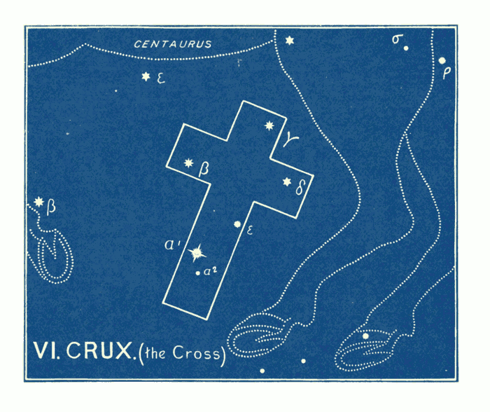Moreover, Aratus describes them, not as they were seen in his day, but as they were seen some 4,000 years before. The stars were not seen from Tarsus as he describes them, and he must therefore have written from a then ancient Zodiac. For notwithstanding that we speak of “fixed stars,” there is a constant, though slow, change taking place amongst them. There is also another change taking place owing to the slow recession of the pole of the heavens (about 50" in the year); so that while Alpha in the constellation of Draco was the Polar Star when the Zodiac was first formed, the Polar Star is now Alpha in what is called Ursa Minor. This change alone carries us back at least 5,000 years. The same movement which has changed the relative position of these two stars has also caused the constellation of the Southern Cross to become invisible in northern latitudes. When the constellations were formed the Southern Cross was visible in N. latitude 40°, and was included in their number. But, though known by tradition, it had not been seen in that latitude for some twenty centuries, [pg 015] until the Cape of Good Hope had been discovered. Then was seen again The Southern Cross depicted by the Patriarchs. Here is another indisputable proof as to the antiquity of the formation of the Zodiac.
