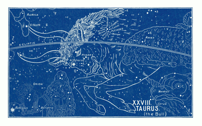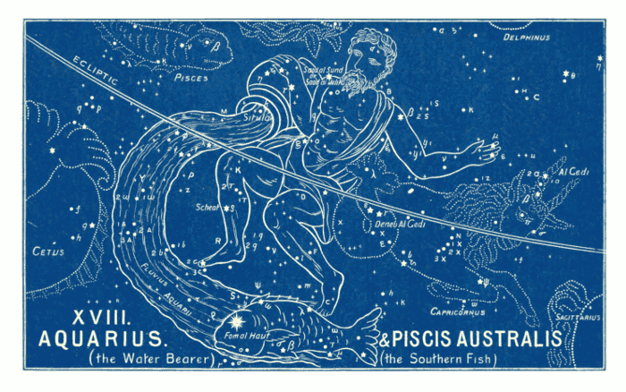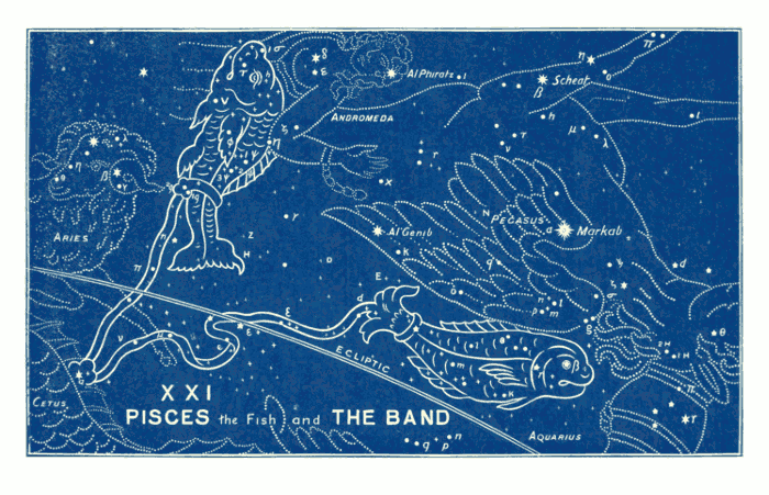 [pg 017]The figures themselves are perfectly arbitrary. There is nothing in the groups of stars to even suggest the figures. This is the first thing which is noticed by every one who looks at the constellations. Take for example the sign of Virgo, and look at the stars. There is nothing whatever to suggest a human form; still less is there anything to show whether that form is a man or a woman. And so with all the others.
