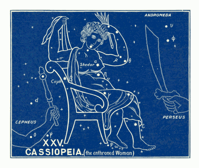 Job xxxviii. 31, 32: “Canst thou bind the sweet influences (r.v. cluster) of the Pleiades (marg., the [pg 008]seven stars, Heb. Cimah), or loose the bands of Orion (marg. Heb. Cesil)? Canst thou bring forth Mazzaroth (marg., the twelve signs. r.v., ‘the twelve signs’: and marg., the signs of the Zodiac) in his season? or canst thou guide Arcturus with his sons (r.v., the Bear with her train; and marg., Heb., sons).”12