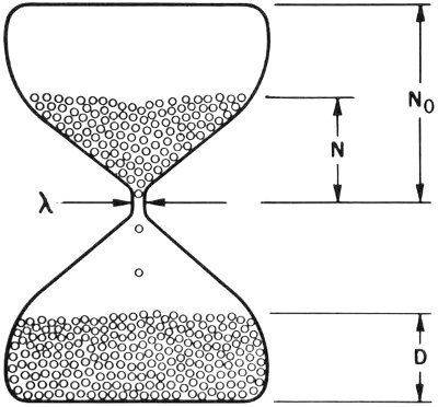 In a large number of radioactive nuclei of a given kind, a certain fraction will decay in a specific length of time. Let’s take this fraction as one-half and measure the time it takes for half the nuclei to decay. This time it is called the HALF-LIFE of that particular nucleus and there are various accurate physical ways of measuring it. During the interval of one half-life, one-half of the nuclei will decay, during the next half-life half of what’s left will decay, and so on. We may tabulate it like this:
