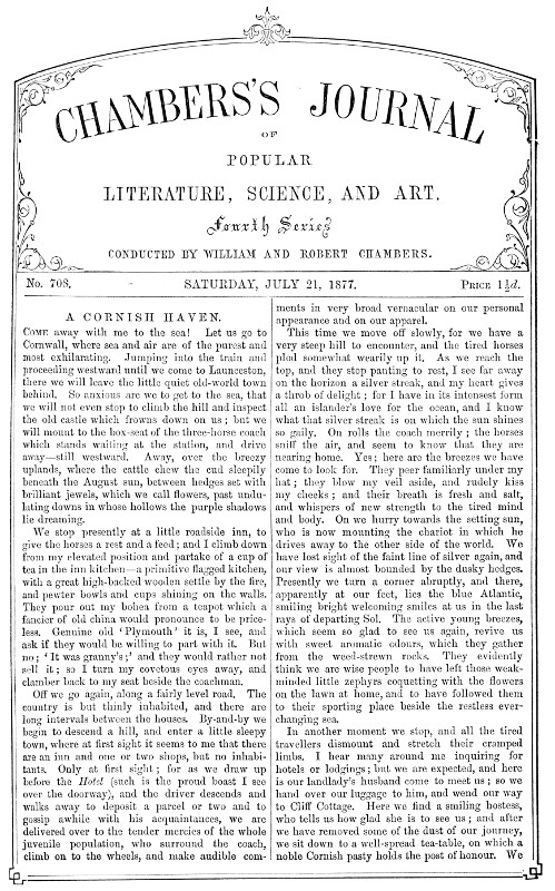 No. 708. | SATURDAY, JULY 21, 1877. | Price 1½d. |