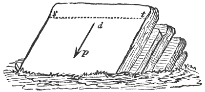 In Fig. 26, s t is the direction of the strike, and d p that of the dip. The strike and direction of the dip are determined with the compass, and the amount of the dip with the clinometer, an instrument for measuring vertical angles.