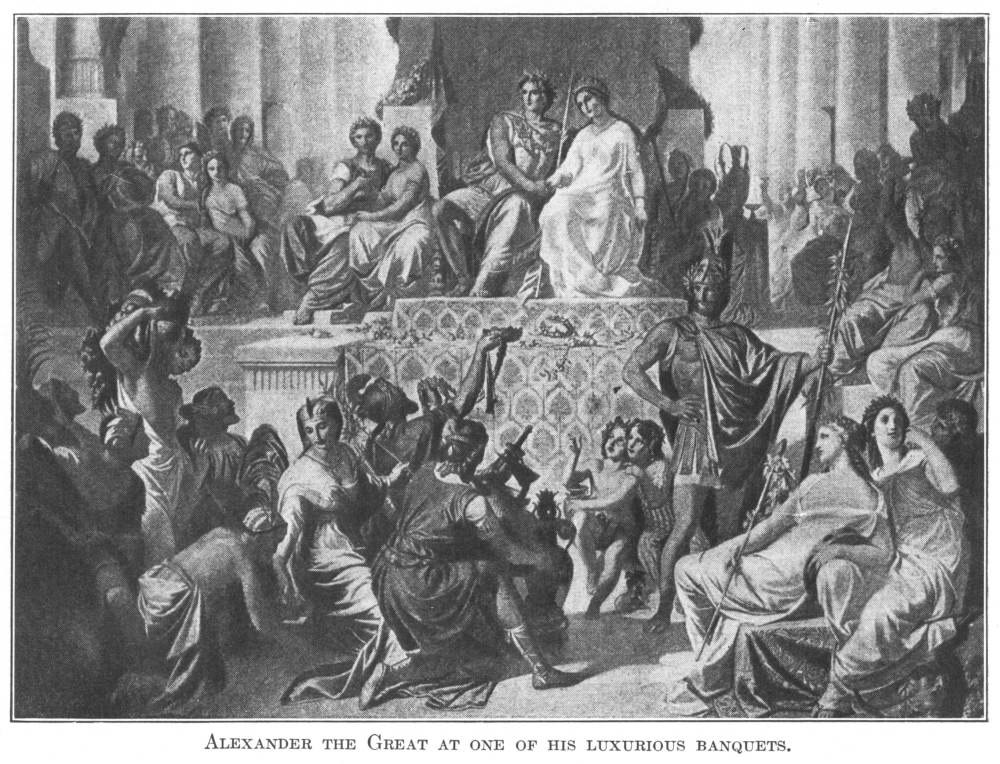 ALEXANDER was the son of Philip, king of Macedon, a country to the north of Greece. His father was a great general as well as a king. Young Alexander was a strong, active, handsome lad. A story is told of his “breaking” a wild horse which had been presented to Philip by a neighboring king. This horse was named Bucephalus—the Greek word for “Bullheaded.” He reared, bit, snorted, and pawed the air, if any one tried to mount him. King Philip was indignant at being given such a present, and was about to send back the “bullheaded beast,” as too dangerous to the life or limb of anyone who attempted to ride him. But Alexander noticed that the horse was frightened even at his own shadow. He begged his father to let him conquer such a splendid animal. The lad was so much in earnest that the king decided to let him try.