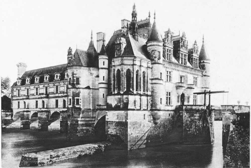 Azay le Rideau, built on a beautifully wooded island on the river Indre, though less known than Chambord, was and is an exquisite specimen of the Renaissance. It owes the fascination of its graceful outlines and peculiar ornamentation to the masterhand which has graven his crowned F and Salamander on its quaint façades. The Louvre and Fontainebleau are also signed by these monograms. He, and his son Henry II., made these piles the historic monuments we now behold.