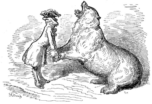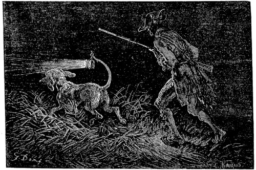 Dans toutes ces circonstances difficiles d'où je me tirai toujours heureusement, quoique souvent au péril de mes jours, ce furent le courage et la présence d'esprit qui me permirent de surmonter tant d'obstacles. Ces deux qualités font, comme chacun sait, l'heureux chasseur, l'heureux soldat et l'heureux marin. Cependant celui-là serait un chasseur, un amiral ou un général imprudent et blâmable, qui s'en remettrait en tout état de cause à sa présence d'esprit ou à son courage, sans avoir recours aux ruses, ni aux instruments, ni aux auxiliaires qui peuvent assurer la réussite de son entreprise. Pour ce qui est de moi, je suis à l'abri de ce reproche, car je puis me vanter d'avoir toujours été cité tant pour l'excellence de mes chevaux, de mes chiens et de mes armes, que pour l'habileté remarquable que je mets à les utiliser. Je ne voudrais pas vous entretenir des détails de mes écuries, de mes chenils ni de mes salles d'armes, comme ont coutume de le faire les palefreniers et les piqueurs, mais je ne peux pas ne pas vous parler de deux chiens qui se sont si particulièrement distingués à mon service, que je ne les oublierai jamais.