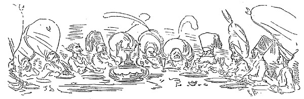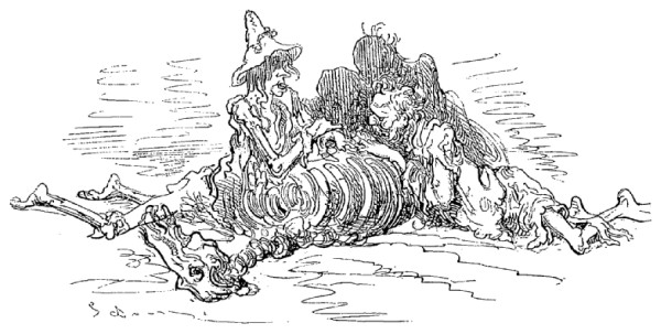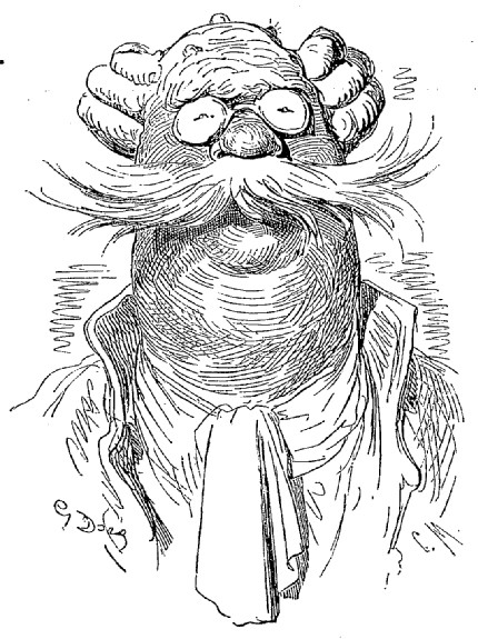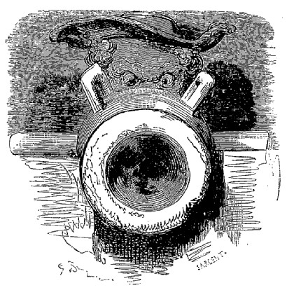 Je vis en outre dans ce pays quelques naturels de Sirius venus là pour affaires; ils ont des têtes de bouledogue et les yeux placés au bout du nez, ou plutôt à la partie inférieure de cet appendice. Ils sont privés de sourcils; mais lorsqu'ils veulent dormir, ils se couvrent les yeux avec leur langue; leur taille moyenne est de vingt pieds; celle des habitants de la lune n'est jamais au-dessous de trente-six pieds. Le nom que portent ces derniers est assez singulier; il peut se traduire par celui d'êtres vivants; on les appelle ainsi parce qu'ils préparent leurs mets sur le feu, tout comme nous. Du reste, ils ne consacrent guère de temps à leurs repas; ils ont sur le côté gauche un petit guichet qu'ils ouvrent et par lequel ils jettent la portion tout entière dans l'estomac; après quoi ils referment le guichet et recommencent l'opération au bout d'un mois, jour pour jour. Ils n'ont donc que douze repas par an, combinaison que tout individu sobre doit trouver bien supérieure à celles usitées chez nous.