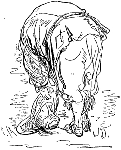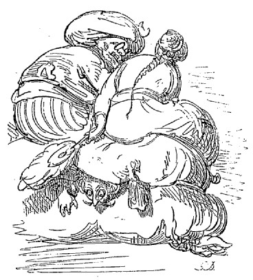 Ils amenèrent d'abord le domestique, son cheval, ensuite le lieutenant, puis son cheval; enfin ma femme, et après elle son petit barbe. Le plus curieux de l'affaire, c'est que, malgré cette chute effroyable, personne, ni gens ni bête, n'avait été blessé, à l'exception de quelques contusions insignifiantes; mais ils étaient en proie à une extrême terreur. Comme vous pouvez l'imaginer, il n'y avait plus à penser à reprendre la chasse, et si, ainsi que je le suppose, vous avez oublié mon chien pendant ce récit, vous m'excuserez de l'avoir également oublié après ce terrible événement.