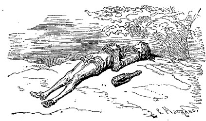 Deux jours avant d'atteindre notre navire, nous vîmes trois individus pendus par les jambes à de grands arbres. Je demandai quel crime leur avait valu cette terrible punition, et j'appris qu'ils étaient allés à l'étranger, et qu'à leur retour ils avaient raconté à leurs amis une foule de mensonges, leur décrivant des lieux qu'ils n'avaient pas vus, et des aventures qui ne leur étaient pas arrivées. Je trouvai cette punition bien méritée, car le premier devoir d'un voyageur, c'est de ne s'écarter jamais de la vérité.
