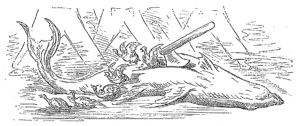 Dès que nous fûmes à flot, nous armâmes les chaloupes qui nous remorquèrent et nous ramenèrent dans le monde. Ce fut avec une joie inexprimable que nous revîmes la lumière du soleil dont nous avions été privés pendant ces quinze jours de captivité. Lorsque tout le monde fut sorti de ce vaste estomac, nous formions une flotte de trente-cinq navires de toutes les nations. Nous laissâmes nos deux mâts plantés dans la gorge du poisson, pour préserver d'un accident semblable au nôtre ceux qui se trouveraient entraînés vers ce gouffre.
