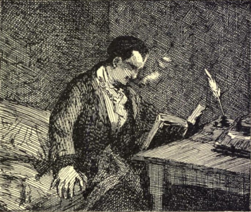 From 1838 to 1842 (when Baudelaire attains his majority) there is a family crisis in a certainly impossible family circle. These years he spends in vagabonding at his own will: living a deliciously depraved life; diving, perhaps, into depths of impurity; haunting the night resorts that one finds in the most curious quarters of Paris—the cafés, the theatres, la Rue de Bréda. He amuses himself enormously: even in "the expense of spirit in a waste of shame;" he lives then, as always, by his sensitive nerves, by his inexhaustible curiosity. He is devoured then, as always, by the inner fires of his genius and of his sensuality; and is, certainly, a quite naturally immoral man in his relations with women.