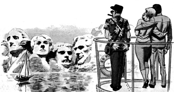Who today could imagine the United States without the majestic sea-cliffs in stately parade from New Mexico to Montana? The beaches of Wyoming, the American Riviera, where fruit trees grow almost to the water's edge? Or incredible Colorado, where the morning skier is the afternoon bather, thanks to the monorail connecting the highest peaks with the glistening white beaches?
