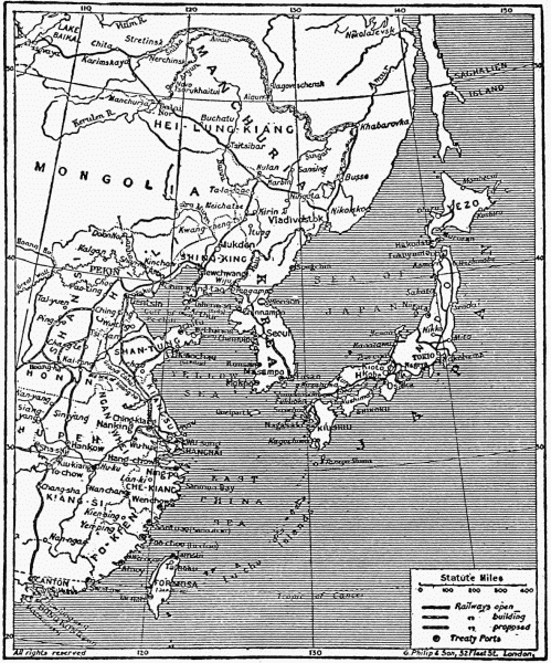 American readers have a more immediate interest in the struggle than the universal love of the stories of battle. With Japan victor over Russia, with the great Muscovite Empire deprived of a foothold on the Pacific, Japan and America remain the only Powers there to divide the rich spoils of Oriental commerce. Our possessions, the Philippines, are Japan's nearest neighbors, and their proximity to Japan, their bearing upon the Asiatic problem open the way for events of more than ordinary importance, if not of seriousness. Already the statement has been made that Japan covets these Islands. Will the United States, one day be called upon to go to war in their behalf? The question is one which no American can ignore. The nation must educate itself to decide one day, the issue, for or against a struggle with this wonderful little Empire, the Great Britain of Asia. The volume, therefore, in addition to its value and interest as a chronicle of a marvelous series of bloody battles is educational, the pioneer, blazing the way to an appreciation of events, of possibilities for our own country which lie in the story of Japan's overwhelming success. Will the Mikado come to believe that having humbled and crushed what was Europe's mightiest Power, he can as readily drive from the Pacific the American Republic?