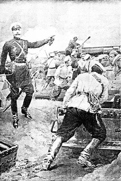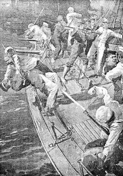 In a thrice the boats were dropped from the davits, and in a moment the officers of the cruisers and torpedo boats in the harbor and the military officials from the fortress were swarming on board the Almaz to learn news of the fight.