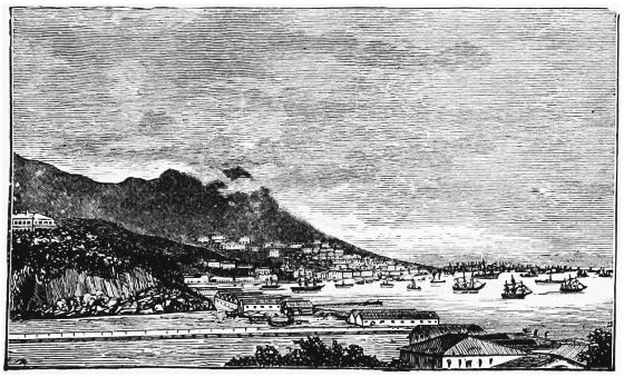 Land in sight when I awake at 5 a.m., a grey streak across the oval of the port. With what intense satisfaction we gaze on the line of barren rock, which has a suspicion of green horizon on the summit of the grey cliffs, only those can picture who have been at sea for some time.