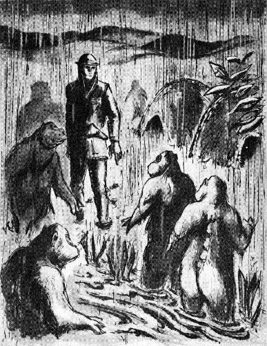 Several of the bolder males climbed up beside Kaiser and began pawing his plastic clothing. Kaiser stood still and tried to keep his breathing shallow, for their odor was almost more than he could bear. One native smeared Kaiser's face with an exploring paw and Kaiser gagged and pushed him roughly away. He was bound by regulations to display no hostility to newly discovered natives, but he couldn't take much more of this.