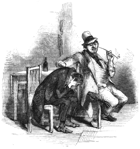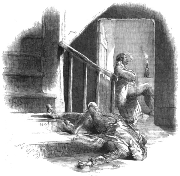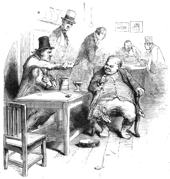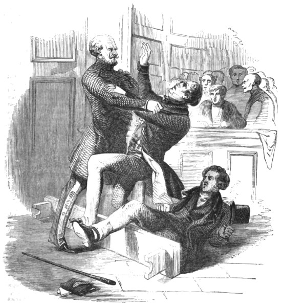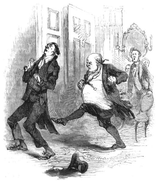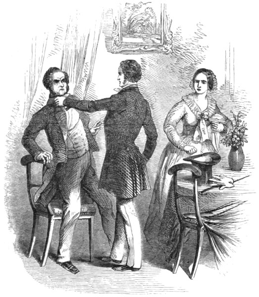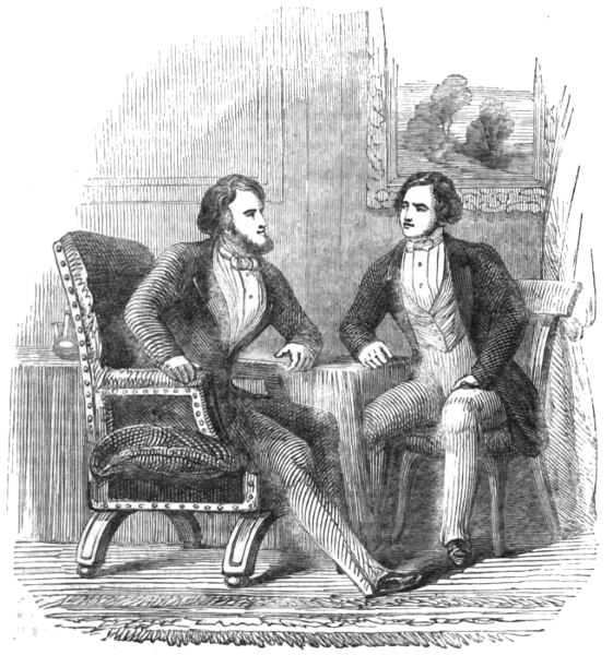 Poor Mr. Bubbleton Styles, having failed in getting up his Railway Company, was compelled to pass through the Insolvents’ Court; and during the eighteen months which have elapsed since that event, he has turned his attention to at least a dozen different occupations. On his discharge from the process of white-washing in Portugal Street, he became a wine-merchant: but finding that this market was completely glutted, he entered the coal and coke trade—with may be a little dealing in slates as a necessary adjunct thereto. This speculation not succeeding “for want of capital,” Mr. Styles turned drysalter—then town-traveller for an ale-brewer—then commission-agent for a house in the woollen line—and then something else. But none of these occupations answering his purpose, and hearing of the good luck which had befallen his friends O’Blunderbuss and Curtis, he put on his last clean shirt and paid them a visit. His reception was not at first very encouraging, inasmuch as the gallant Irishman commenced by knocking him down and bunging up his right eye, for the simple reason that Mr. Styles was unaware of that formidable gentleman’s elevation to the rank of Colonel, and had called him Captain: but when explanations took place, complete harmony was restored; and the 416 worthy Bubbleton, having been made uncommonly drunk by his two friends, received a cheque for a hundred guineas to enable him to begin the world again. He has made the recommencement accordingly, and seems in a fair way to get a living by adhering to one particular occupation instead of having a hundred upon his hands at the same time.