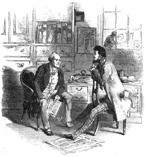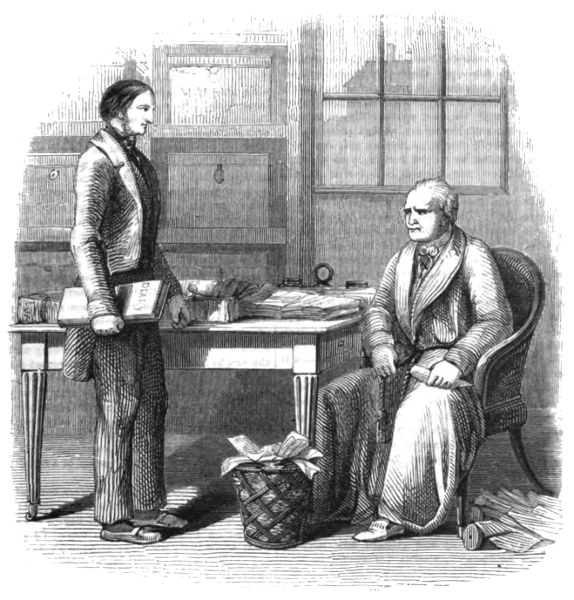 “We hope the contemptible slanderer who ‘does the criticisms’ for the News and Express will treat his readers (two grown-up persons and a small boy for the News, and the small boy without the grown-up persons for the Express) with an account of the origin, progress, and present condition of those threepenny things. If so, he must state how the News first came out at five-pence with the intention of smashing every thing,—how Charles Dickens was the man entrusted with the obstetric process of introducing this phenomenon to the world,—how froth was never so frothy, and vapouring never so vapoury, as when the bills, placards, and advertisements appeared,—and how the mountain at last brought forth a mouse! In fact, no failure was ever more miserable—more ludicrous—more contemptible than that of the Daily News. When a friend once spoke of his uppermost garment to Brummell, the ‘exquisite,’ laying his finger upon the collar thereof, said, ‘Do you call this thing a coat?’—and when the News first came out, people held it up between the tips of their forefinger and thumb, and asked each other innocently, ‘Do you call this thing a newspaper?’ Well, after continuing remarkably sickly for some time, and seeing the utter folly of hoping to compete with the established daily newspapers, Bradbury and Evans—dear, kind, worthy souls!—said one morning to each other, ‘This will never do: the public will not be gulled—we must really sell our wares at what they are worth;’—and so down went the price of the News to twopence-halfpenny! ‘Hurrah for the cheap newspaper press!’ vociferated they who now affect to look down with contempt on cheap literature altogether: and forthwith they fetch Mr. Dilk all the way from the Athenæum office in Wellington Street to manage their paper for them. And such management as it has been! Mr. Dilk knows about as much of newspapers in general as he does of courtesy in the Athenæum in particular;—and Bradbury and Evans very soon found that a twopenny-halfpenny daily thing was ‘no go.’ The price is accordingly raised to threepence; and, just to eke out by hook and by crook, the Express is issued as an evening paper, its contents being precisely those of the News, with perhaps half-a-dozen lines of new matter just to make a show under the head of ‘Latest Intelligence.’ Thus has the Daily News been tinkered about in all shapes and ways, with the hope of establishing it on some kind of basis or another;—and, after such a career, it fancies itself to be respectable and influential enough to undertake the duties of Mentor! But it has entrusted the office to a disgusting twaddler who scruples not to season his mawkish composition with diabolical lies, as a make-shift for ‘Attic salt.’ However, enough of this for the present:—we have compelled the News and the Express to acknowledge themselves to be slanderers;—but we are afraid that after all they have got the better of us, inasmuch as they probably provoked us only for the purpose of obtaining a gratuitous advertisement through the medium of any reply which might be made to them in The Miscellany.”—Reynolds’s Miscellany, No. 56.