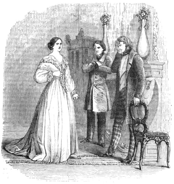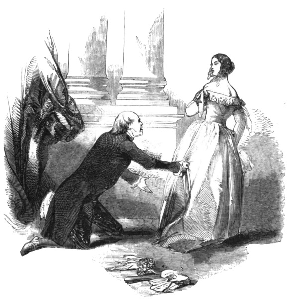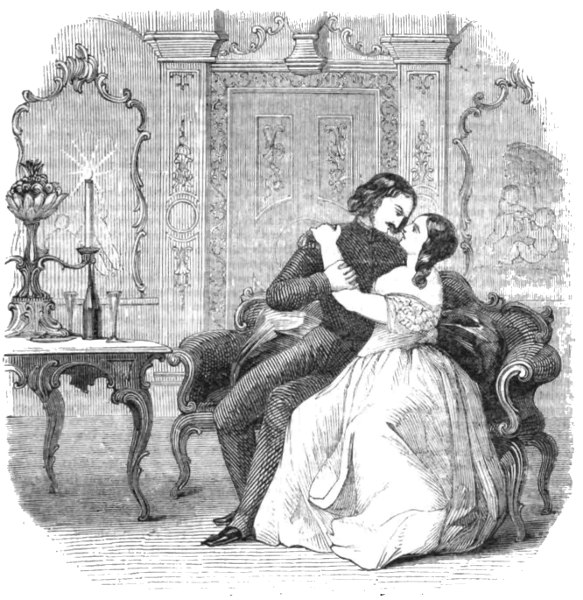 For nearly a year after his attempted suicide, the Marquis of Delmour lived happily with his wife, the past being buried in oblivion. Lady Delmour devoted herself to her husband as far as her own blighted and crushed affections would permit; and she at least had the supreme felicity of witnessing the unalloyed happiness which was experienced by Lord William Trevelyan and the lovely Agnes, who were united about six months after the reconciliation of the young lady’s parents, the consent of the Lord Chancellor being obtained to sanction the marriage. But in the summer of 1847 the Marquis of Delmour was seized with a sudden and alarming illness; and in spite of the unwearied attentions of Sir John Lascelles and Lady Delmour, the old nobleman succumbed to the tyrant sway of Death. Upwards of a year has elapsed since that event; and we observe by a recent paragraph in the newspapers that the Marchioness has bestowed her hand upon Sir Gilbert Heathcote.