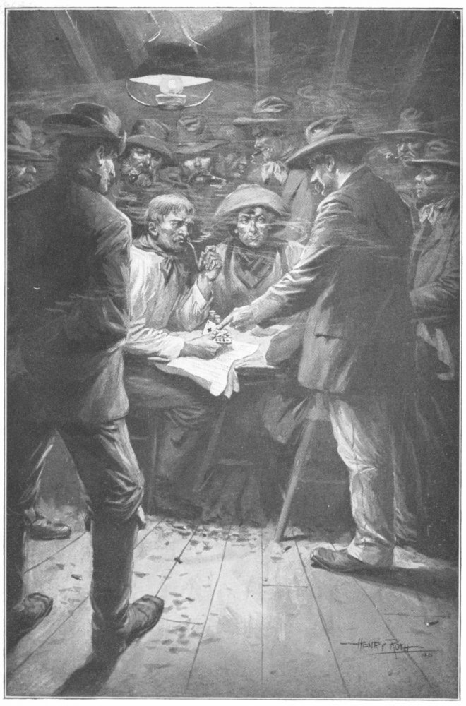No great amount of money had been squandered on the decorations of this particular temple of Bacchus, but such furniture as was deemed essential had been provided, and the main piece of it, outside of the bar itself, was a circular table about four feet in diameter, covered with what had once been green baize. It had suffered long from rough usage, but was still serviceable.