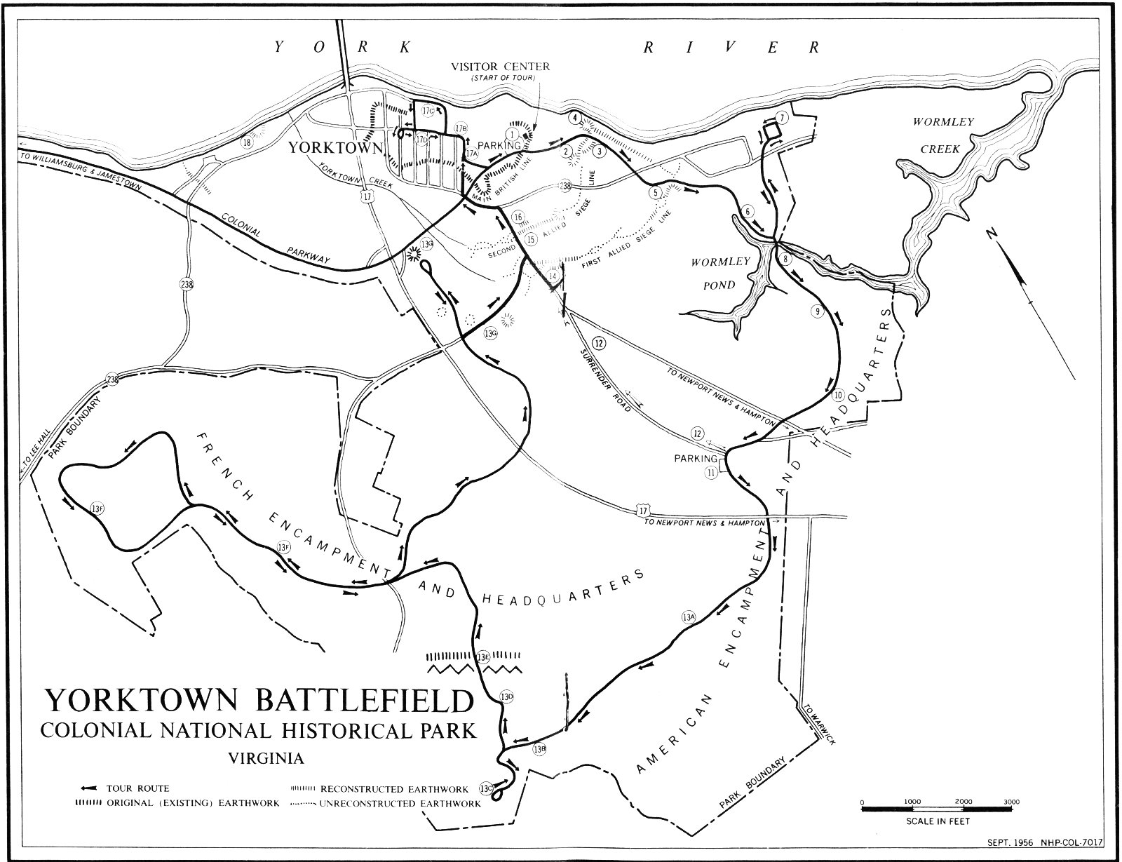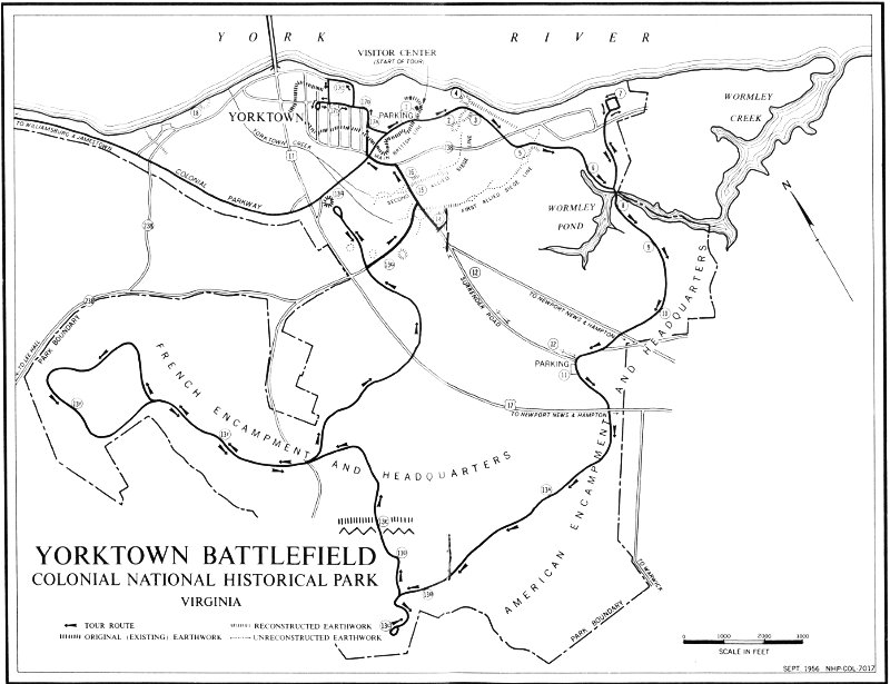 The Yorktown Battlefield is a part of Colonial National Historical Park, which also includes the major part of Jamestown Island, together with some of the adjacent area, the Colonial Parkway, and the Cape Henry Memorial at Cape Henry, Va. The park was first established as a national monument by Presidential proclamation in 1930 and given its present designation by act of Congress in 1936.
