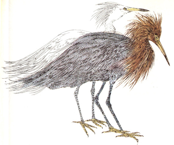 Birds provide much of the visual excitement of the beach community, just as they do in other parts of the park. Sandpipers, pelicans, gulls, egrets, ospreys, and bald eagles use it and the bordering waters for feeding, nesting, and resting. Mammals, notably raccoons, stalk the beach in search of food. And the big loggerhead turtle depends on it for nesting. In late spring and early summer the female loggerhead hauls herself up on the beach and digs a hole above hightide mark. There she deposits about 100 ping-pong balls—which should hatch 24 out into baby loggerheads. Unfortunately for this marine reptile, however, most of them meet another fate. Hardly has the female turtle covered the eggs with sand and started back toward the water, than they are dug up and devoured by raccoons and other predators. These conditions created such high mortality of the turtles that the National Park Service has adopted special protective measures—removing some of the raccoons and erecting wire barriers around turtle nests. These measures have been effective, but continued surveillance is required if the loggerhead is not to disappear from Florida.