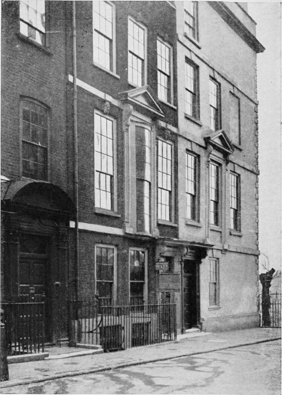 Dickens’s memory obviously failed him on this point, for he was a mere infant of barely five months old when his parents left Commercial Road to reside in Hawke Street, a fact which he had probably forgotten, and of which Forster had no knowledge, as no mention is made by him of the latter street. Here the family had lived two years when John Dickens was recalled to London. I therefore venture to suggest that the novelist vaguely recalled certain incidents of his childhood associated with Hawke Street. True, there is no “small front garden” at No. 16 (indeed, all the houses here are flush with the sidewalk), but at the back is a garden overlooked 7 by the kitchen window, which has an old-fashioned, broad window-seat.