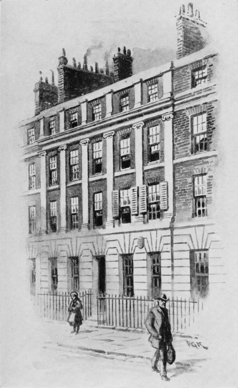 Instead of improving, the elder Dickens’s affairs grew from bad to worse, and all ordinary efforts to propitiate his creditors having been exhausted, Mrs. Dickens laudably resolved to attempt a solution of the difficulty by means of a school for young ladies. Accordingly, a house was taken at No. 4, Gower Street North, whither the family removed in 1823. This and the adjoining houses had only just been built. The rate-book shows that No. 4 was taken in the name of Mrs. Dickens, at an annual rental of £50, and that it was in the occupation of the Dickens family from Michaelmas, 1823, to Lady Day, 1824, they having apparently left Bayham Street at Christmas of the former year. No. 4, Gower Street North stood a little to the north of Gower Street 27 Chapel, erected in 1820, and still existing on the west side of the road; the house, known in recent times as No. 147, Gower Street, was demolished about 1895, and an extension of Messrs. Maple’s premises now occupies the site. When, in 1890, I visited the place with my friend the late Mr. W. R. Hughes (author of “A Week’s Tramp in Dickens Land”), we found it in the occupation of a manufacturer of artificial human eyes, a sort of Mr. Venus, with his “human eyes warious,” as depicted in “Our Mutual Friend”; while there was a dancing academy next door, reminiscent of Mr. Turveydrop, the professor of deportment in “Bleak House.” The Dickens residence had six small rooms, with kitchen in basement, each front room having two windows—altogether a fairly comfortable abode, but minus a garden. The result of Mrs. Dickens’s enterprise proved as disastrous as that of Mrs. Micawber’s. “Poor Mrs. Micawber! She said she had tried to exert herself; and so, I have no doubt, she had. The centre of the street door was perfectly covered with a great brass plate, on which was engraved, ‘Mrs. Micawber’s Boarding Establishment for Young Ladies’; but I never found that any young ladies had ever been to school there; or that any young lady ever came, or proposed to come; or that the least preparation was ever made to receive any young lady.” The actual facts are thus recorded in fiction, and the futility of Mrs. Dickens’s excellent intention to retrieve the family misfortunes seemed inevitable, in spite of the energy displayed by the youthful Charles in distributing “at a great many doors a great many circulars,” calling attention to the superior advantages of the new seminary. The blow proved 28 a crushing one, rendering the prospect more hopeless than ever. Importunate creditors, who could no longer be kept at bay, effected the arrest of John Dickens, who was conveyed forthwith to a prison for debtors in the Borough of Southwark; his last words to his heart-broken son as he was carried off being similar to those despondingly uttered by Mr. Micawber under like circumstances, to the effect that the sun was set upon him for ever.