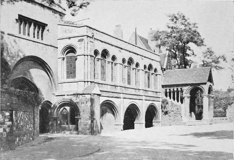 Rochester has undergone many topographical changes (not necessarily for the better) since that memorable morning in 1827 when Mr. Pickwick leaned over the balustrades of the old stone bridge “contemplating nature and waiting for breakfast.” To begin with, the bridge itself has been demolished, and an elliptical iron structure takes its place. The view, too, which Mr. Pickwick admired of the banks of the Medway, with the cornfields, pastures, and windmills, is more obscured to-day by that discomforting symbol of commercialism, smoke, so constantly pouring from the ever-increasing number of lofty shafts appertaining to the various cement works which flourish here. From the other side of the bridge Mr. Pickwick could obtain a pleasant glimpse of the river, with its numerous sailing-barges, in the direction of Chatham; but the prospect, alas! is now completely blotted out by hideous railway viaducts. Happily, in spite of modern innovations, those who appreciate the old-world air of our English cities will find much to charm them in the precincts of the Cathedral, sufficiently remote from the bustle and noise of the High Street to enable it to preserve the quiet serenity which invariably encompasses our venerable minsters. Besides the picturesque stone gateways here, much remains in the High Street and elsewhere 216 to remind us of what Rochester looked like in days of old; as Dickens writes in “The Seven Poor Travellers”: “The silent High Street of Rochester is full of gables, with old beams and timbers carved into strange faces.” Of these surviving specimens of ancient domestic architecture, many will regard Eastgate House as the most interesting from an archæological point of view, while to the Dickens student there is an additional attraction in the fact that it is the original of the Nuns’ House in “Edwin Drood,” the boarding-school for young ladies over which Miss Twinkleton presided, and where Rosa Bud received her education.