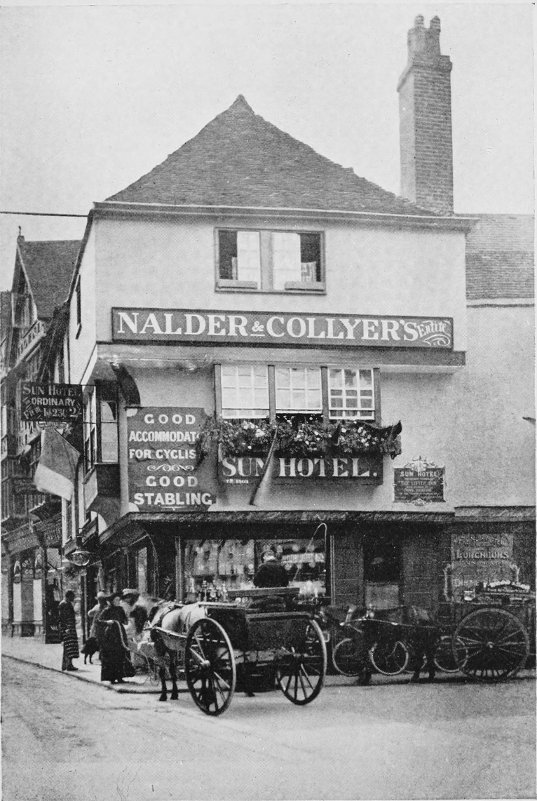 In the eighteenth chapter of “The Mystery of Edwin Drood” we find the place disguised as “The Crozier”—“the orthodox hotel” at Cloisterham (i.e., Rochester)—and in “The Holly-Tree Inn” it is thus directly immortalized: “There was an inn in the cathedral town where I went to school, which had pleasanter recollections about it than any of these.... It was the inn where friends used to put up, and where we used to go and see parents, and to have salmon and fowls, and be tipped. It had an ecclesiastical sign—the Mitre—and a bar that seemed to be the next best thing to a bishopric, it was so snug.”[9]
