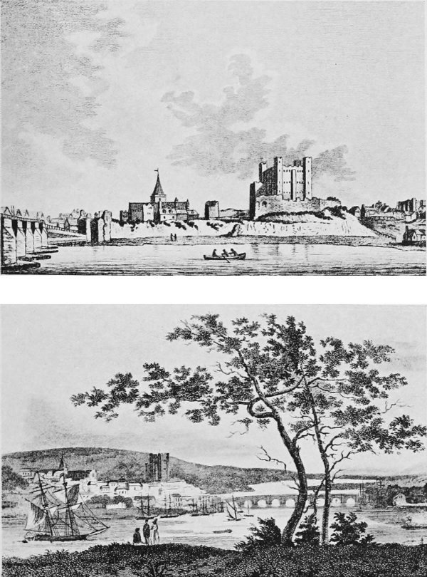 Chatham, on the river Medway, derives its name from the Saxon word Ceteham or Cættham, meaning “village of cottages.” It is anything but a “village” now, having since that remote age developed into a river port and a populous fortified town. Remains of Roman villas have been found in the neighbourhood, thus testifying to its antiquity. Chatham is one of the principal royal shipbuilding establishments in the kingdom. The dockyard was founded by Elizabeth before the threatened invasion of the Spanish Armada, and removed to its present site in 1662; it is now nearly two miles in length, and controlled by an Admiral-Superintendent, with a staff of artisans and labourers numbering about five thousand. Dickens describes and mentions Chatham in several of his writings, and in one 8 of the earliest he refers to it by the name of “Mudfog.”[2]