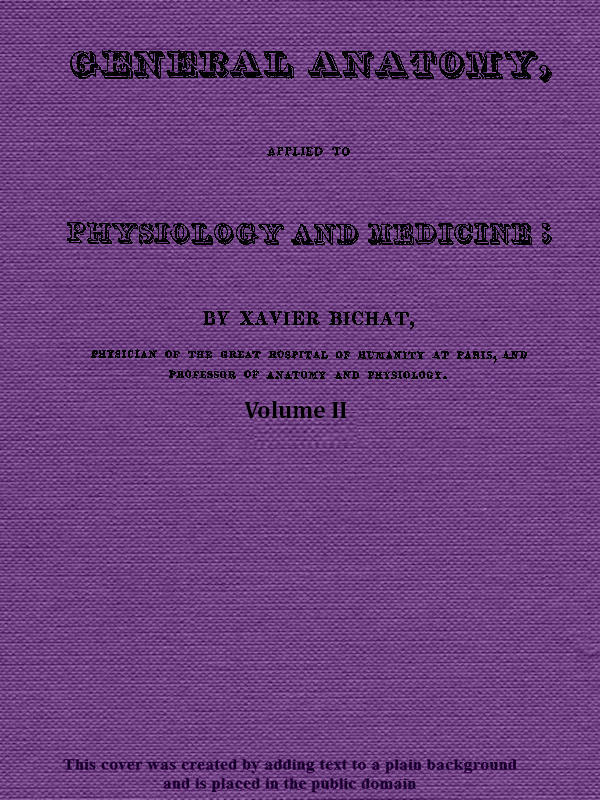 "General Anatomy, applied to Physiology and Medicine; by Xavier Bichat, Physician of the Great Hospital of Humanity at Paris, and Professor of Anatomy and Physiology. Translated from the French, by George Hayward, M. D. Fellow of the American Academy of Arts and Sciences, and of the Massachusetts Medical Society. In three Volumes. Volume II."