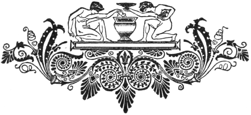 In these five stories the scene is laid in Athens, on the Ægean Sea, and in Thessaly—but, wherever it is, I have always endeavored to give the characters life and movement, and make them children of the times and of the Hellenic soil. I have also sought to delve deeper into the life of ancient times than usually happens inviii novels. Many peculiarities, like the purification after a murder in the first tale, the Baetylus oracle in “The Hetaeria,” and the use of the great weapon of naval warfare, the dolphin, in “Too Happy” have scarcely been previously described in any form in our literature. The belief in marvellous stones animated by spirits was widely diffused in ancient times, as such stones, under the name of abadir, were known in Phoenicia. The description of the Baetylus oracle is founded upon Pliny (17, 9, 51), Photius (p. 1047) and Pausanias (X. 24). It is evident enough that the stone-spirit’s answer was given by the ventriloquist’s art. Though the ancients had several names for ventriloquists, such as engastrimythae, sternomanteis, etc., the art was certainly little known in daily life, it seems to have been kept secret and used for the answers of oracles, etc. The soothsayer and ventriloquist Eurycles, mentioned by Aristophanes, endeavored to make the people believe that a spirit spoke from his mouth because he uttered words without moving his lips. For the dolphin, the weapon used in naval warfare, see Scholia graeca in Aristoph. (equit 762) and Thucydides (VII. 41).