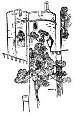 Peveril’s Castle surmounts a steep hill, which one climbs by a rough, curving path. Nothing of much interest remains—there is a buttressed keep and a broken wall—architecturally it is inferior to many a Border peel; but its situation is amazingly well-chosen. On one side is the precipice descending to the “Devil’s Cave”; on the other the deep and narrow ravine of Cave Dale, a parched and solitary place not devoid of a certain charm. Little is known of the castle’s history, and in all likelihood it was from the first a stronghold of very minor importance.