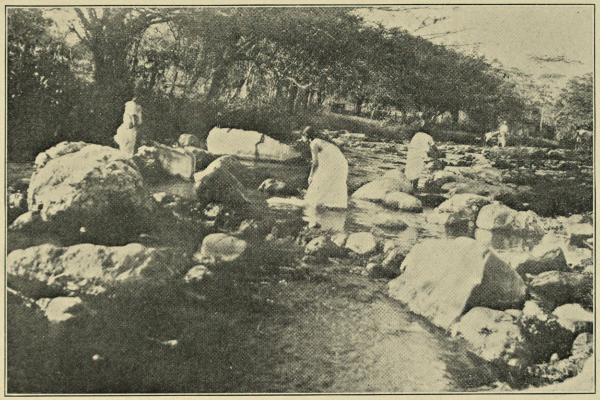 Both in the cities and in the country women are beasts of burden, for the women or the donkeys furnish the transportation, the men do not work much. The women work in the markets and little stores, and carry great loads of sugar, fruit, water, etc., on their heads in the hot sun. The streets are full of children that never were in school. They grow up to be lazy, fight with each other, and steal. When[202] you have one around who is not saved you have to keep everything under lock and key.