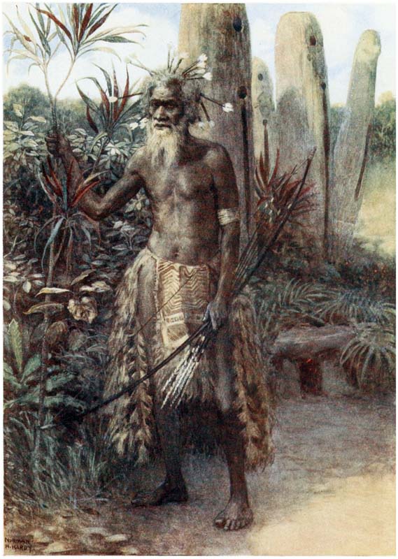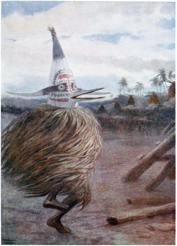 But come, let us see these islands where the sun pours down on bright yellow sands through the long, waving, rustling leaves of the palm trees, and glistens on the skins of the crocodiles basking in the rivers, and on the strong, brown arms and tanned faces of the traders, who have braved all dangers for a life of adventure. Let us look into the quaint lives of the natives—the last relics of barbarism; let us see their huts and join in their weird ceremonies and listen to their songs and learn their superstitions, for in a few years these things will be gone, and the cyclist and the tripper will be crowding these savage islands, whilst the sturdy {16} head-hunters will be dead, and their sons will be cadging pennies, whilst the dark, shy girls will be bold and talk with nasal accents.