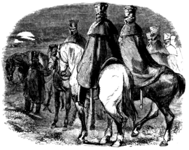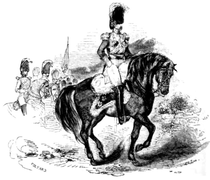 “Indeed he has, but he very soon effects a 5change in their appearance. The first thing the recruit has to learn is to stand in a proper position. Then come facing, stepping, and marching, filing, wheeling, and with the manual and platoon exercise, forming; and, if in the cavalry, saddling, bridling, mounting, riding, and leaping, with the manœuvres of troops and squadrons, companies, battalions and regiments. What with carbine and pistol exercise, sword exercise and lance exercise, with parade, mounting guard, and keeping accoutrements, and perhaps, a horse in order, a soldier has many duties to perform.”