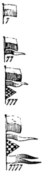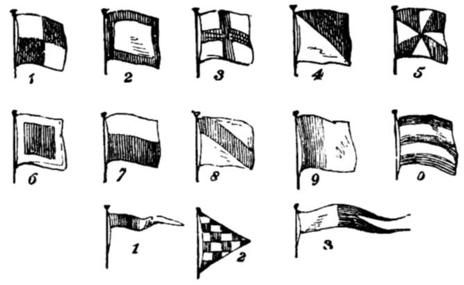 | The tale-telling captain.—The heroic and kind-hearted officer.—The standard-bearer.—Flags.—The royal standard.—Flag of the lord high-admiral.—Flag of the admiral of the fleet.—Colours in the army.—Day signals.—Night signals.—Fog-signals.—Cipher flags and substitutes.—Telegraphs.—Alphabet for field signals.—Description of a sailor on shore. | 138 |