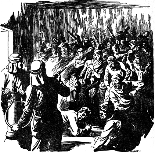 Faces turned around. Gilchrist saw eyes gleam white. The word rose in a roar, and a woman screamed.