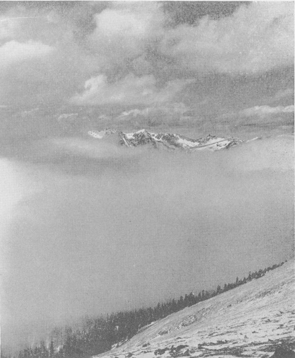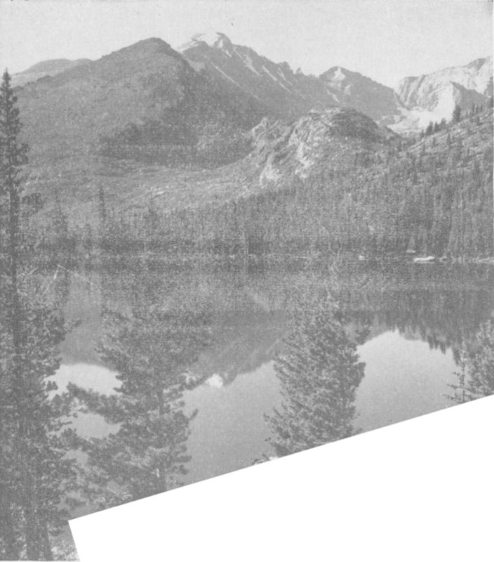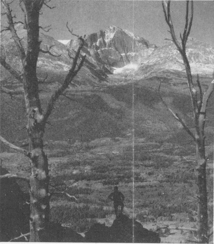 LONGS PEAK From almost any point in the Park this peak can be seen reaching its towering summit, 14,255 feet above sea level into the clear, crisp air.