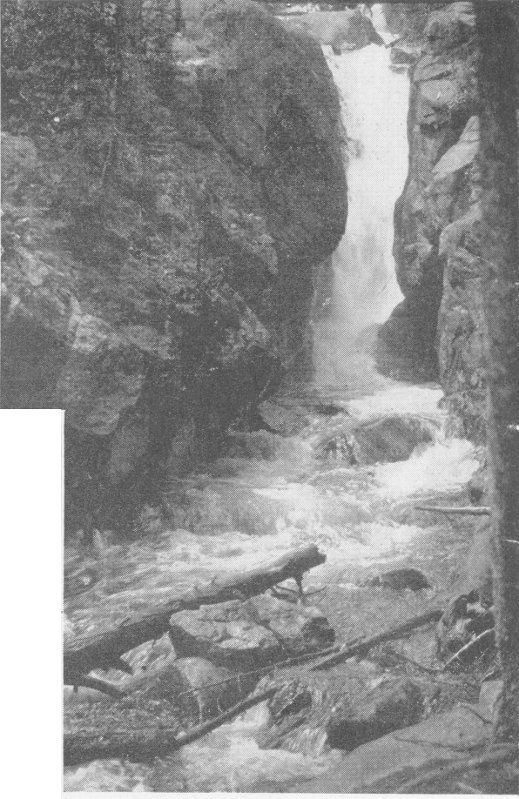 Chasm Falls, on a tumbling mountain stream fresh from the ever-present snow banks, is just off the old Fall River highway, above Horseshoe Park.