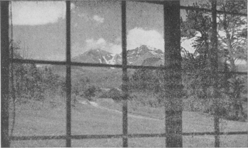 At the Eastern entrance to this National playground is the modern town of Estes Park, with an elevation of 7,549 feet. Estes Park has daily mail service, direct telegraph and long distance telephone connections, and most efficient electric and phone service. Its water, only a few hours from the eternal snow fields, is 99 per cent pure by test, and fresh pure milk from inspected herds is delivered daily.