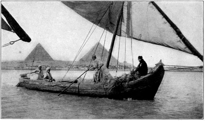 The next morning we looked through the open French windows with their rose hangings, out upon the Pyramids and the Nile. The river lay almost at our feet. The beauty of it was intoxicating in the soft light of the rising sun. When my friend broke the silence she said, “It is indeed beautiful,” then smiling she added “but,—