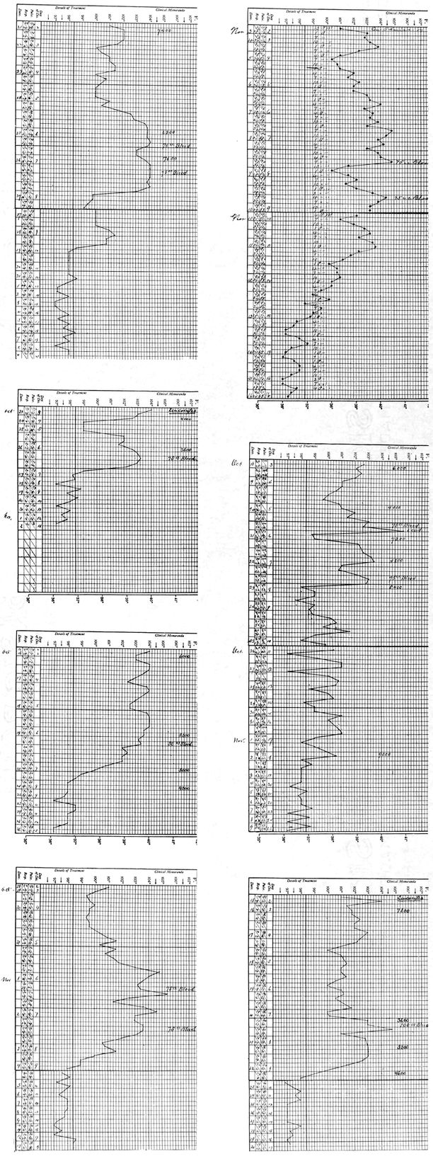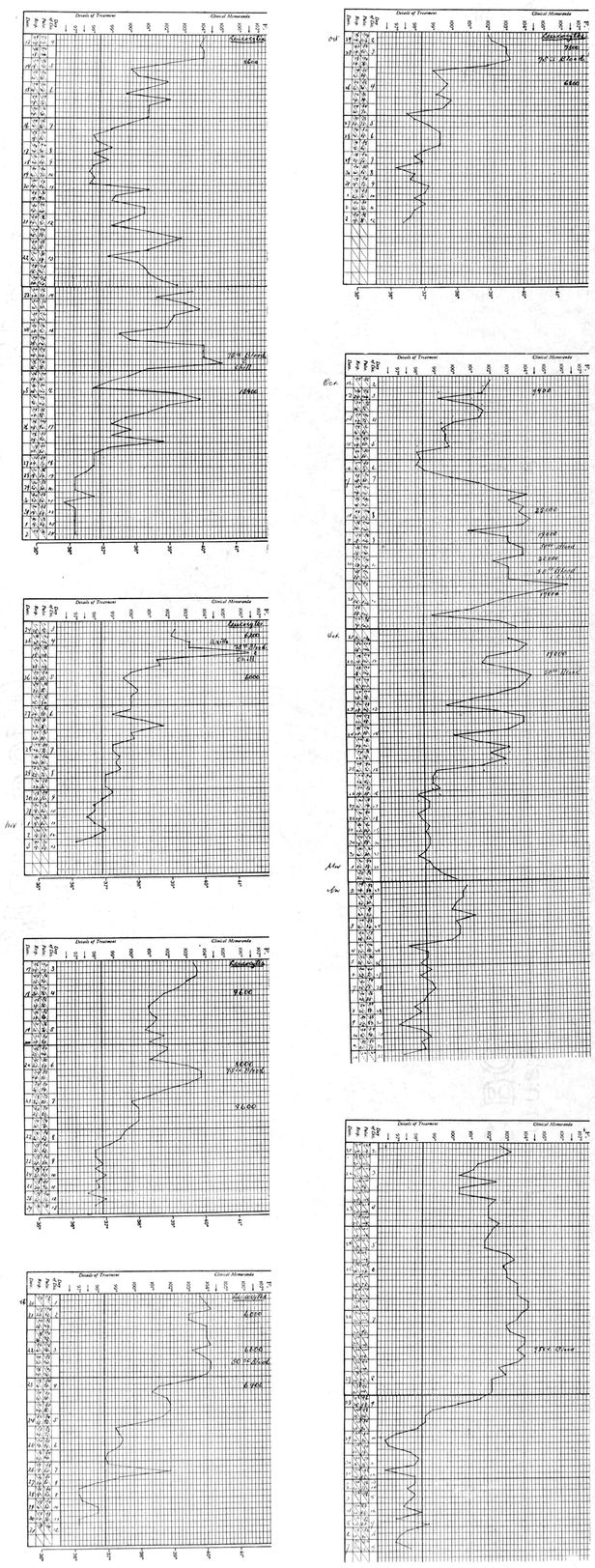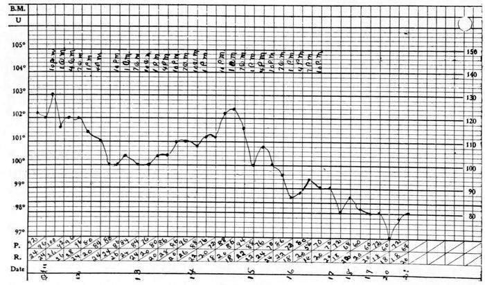 Or the temperature might fall one or two degrees for a day or so after the first rise, and then go up again for one or two more days, and subside by lysis as is shown in Chart II.