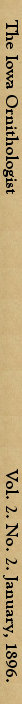 The compilation committee appointed at the First Annual Congress of the I. O. A. has begun work and expects, by the time of the Second Congress, to be held next summer, to make a good showing on a report which is to be, if possible, a complete “Annotated List of the Birds of Iowa.” In order to make this list as comprehensive as possible, it is earnestly requested that every member send to the chairman of the compilation committee a marked check list showing every species on which he can furnish original, authentic Iowa notes. These lists will be examined and whenever a species is noted on 55 which the report of the committee is lacking, incomplete or unsatisfactory, the notes on that species will be sent for. The marked check lists should all be in the hands of the undersigned before May 31, 1896. This early notice is given in order that members may observe, with especial caution, during the spring of ’96, for fresh and valuable notes. These notes should bear particularly on the food, breeding habits, abundance of individuals, economic value, and migrations.