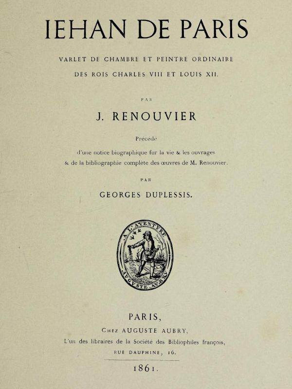 Cependant il n'est pas certain que ce soit là notre artiste. Le nom de Jehan de Paris a été porté par d'autres avant lui, sans compter le héros de la Bibliothèque bleue, & celui dont Rabelais a fait dans son Enfer un gresseur de bottes. En 1455, il était déjà parmi les gens & officiers du duc d'Orléans[27]. D'un autre côté, on ne le trouve pas sur les listes que nous avons des officiers de la maison de Charles VIII en 1490. M. de Laborde ne l'a pas trouvé non plus dans les comptes de cette époque[28]. Bien que Jehan de Paris soit considéré avec raison comme l'un des quatre grands peintres primitifs, & mis en parallèle avec Fouquet, Lichtemon & Bourdichon; bien qu'il soit qualifié du titre de peintre de Charles VIII, & cité comme tel dans les Contes de la reine de Navarre, ce n'est qu'à Lyon qu'on voit commencer sa carrière.