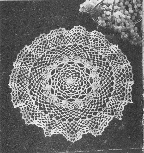 If SMALLER DOILY is desired start ruffle in either the 27th or 44th round and work as many rounds of ch 10 loops for ruffle as desired.
