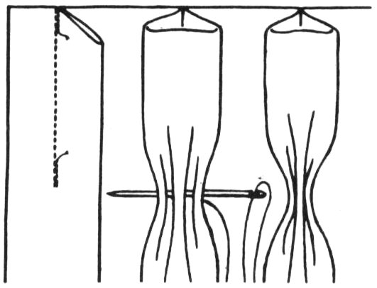 In weaving, yarns are threaded lengthwise on a loom which form the warp of the fabric. Another yarn is interlaced back and forth crosswise and is called the weft or filling thread. This is known as the plain weave. Linen, voile, chintz, etc., are a few of the plain woven fabrics. There are variations of the plain weave, such as the pile weave, with velveteen and corduroy as examples. The basket weave is another, with Monk’s cloth as an example. The diagonal line halfway between the lengthwise and crosswise threads is the bias of the fabric.