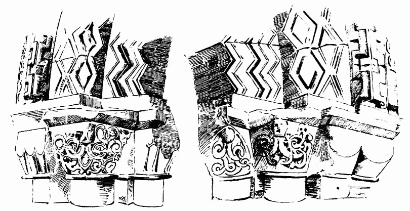As regards the style of the architecture and ornamentation, the only difference observable is that which is common to all the structures of the respective periods.