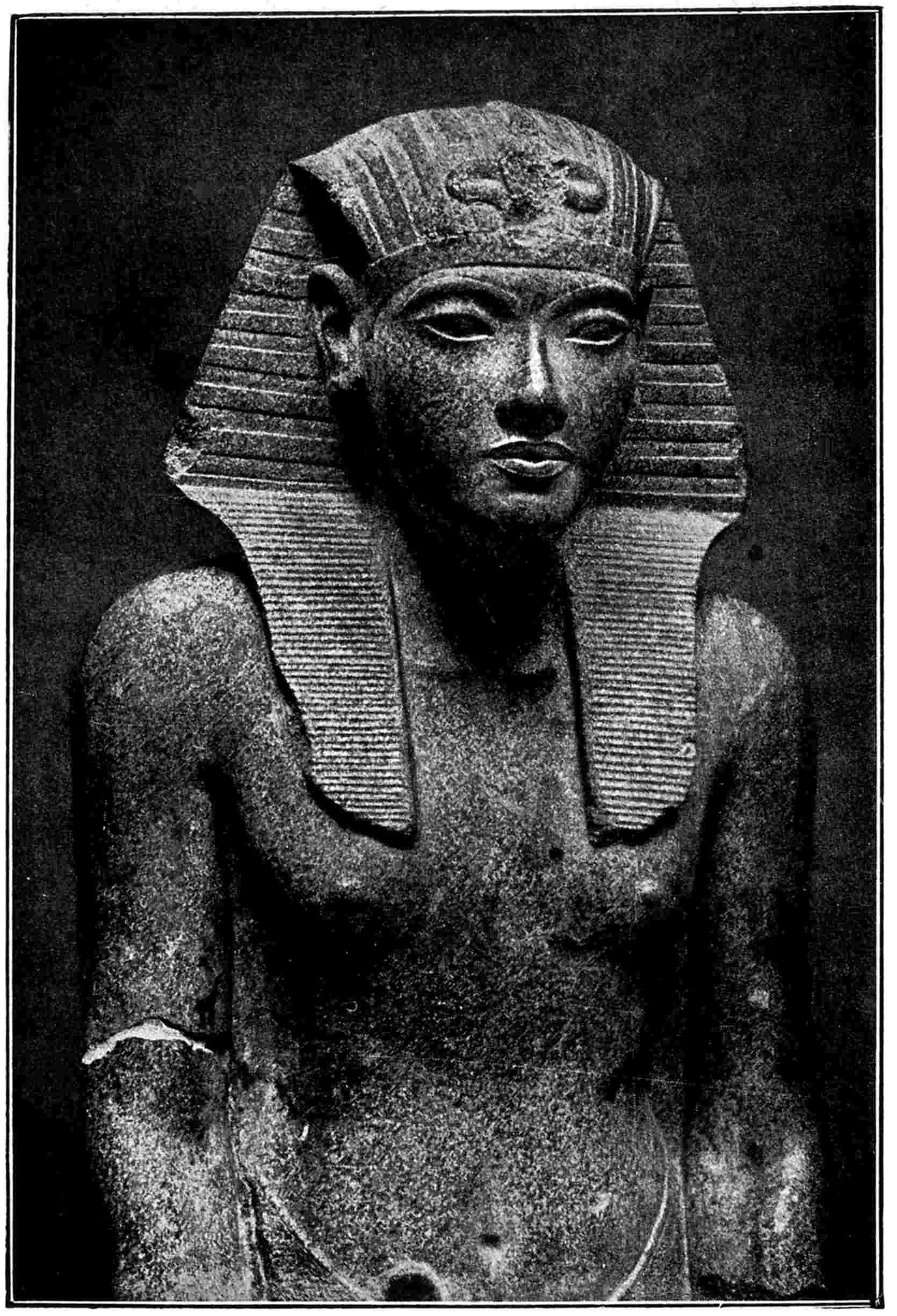 51 The head of the Pharaoh, which was stolen at the moment of discovery, has been found since this article appeared, and purchased by the Cairo Museum, 1912.